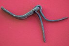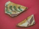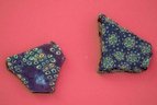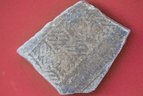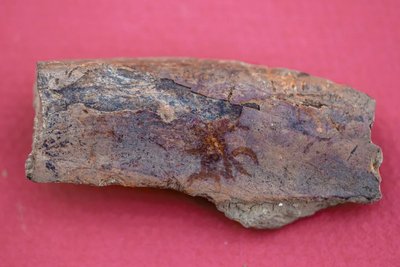 - un fragment d’os sur lequel sont peints des caractères de couleur rouge.