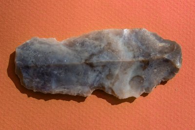Le troisième objet est un petit biface en silex datant du Néolithique ou Âge de la pierre polie. Cet outil, de très jolie facture, est plus récent. Il servait, entre autres, à râcler les peaux.