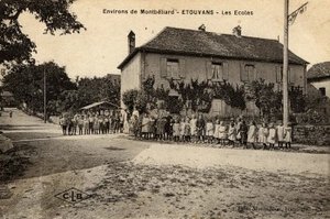 En 1874, lors d’une autre de ses visites, l’inspecteur primaire de MONTBELIARD se montre pourtant insatisfait : il trouve « que la salle mixte actuelle est beaucoup trop exiguë pour la population scolaire d’ETOUVANS et qu’en conséquence il y a lieu d’agrandir ce local ». Le Conseil municipal « admettant la justesse de l’observation, préfère créer une école spéciale de filles », estimant que leur éducation et leur instruction « seront mieux assurées par une institutrice ». L’autorisation d’ouverture lui est accordée ; l’école sera dirigée par une institutrice laïque.