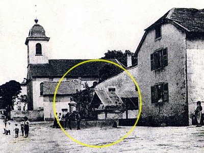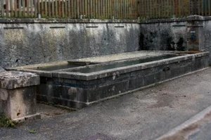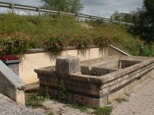 – une avec abreuvoir pour utiliser une source qui coule à l’extrémité du bourg, du côté de COLOMBIER FONTAINE : celle des Prés sous la Ville à laquelle on adjoindra par la suite deux bassins lavoirs.